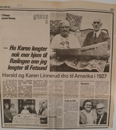 Mange som utvandret, lengtet nok "hjem" til Norge, mens andre ikke gjorde det. Dette er et oppslag fra Romerike blad i 1975: