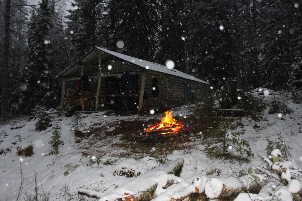 Kommunehytta har forfalt, og det er særlig den nederste stokken og vinduene som er dårlige. I tillegg var pipa over tak slitt: Den var bare å plukke fra hverandre. Og golvet som har nærmest ligget rett på bakken, var dårlig. Så det foreløpige arbeidet har bestått i å fjerne golv og skillevegg, ta ned pipa over tak, ta ut vinduer og støtte opp taket for vinteren. I tillegg har vi frigjort deler av bunnstokken og brent store bål.