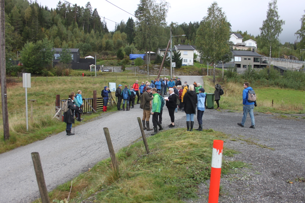 Vandringa startet ved porten vis a vis bedehuset. Ordføreren holdt ei innledning om arbeidet med stien og roste dem som hadde stått for arbeidet. Uten arbeidet til medlemmene i RØX og meget velvillige og interesserte grunneiere hadde ikke stien blitt noe av.